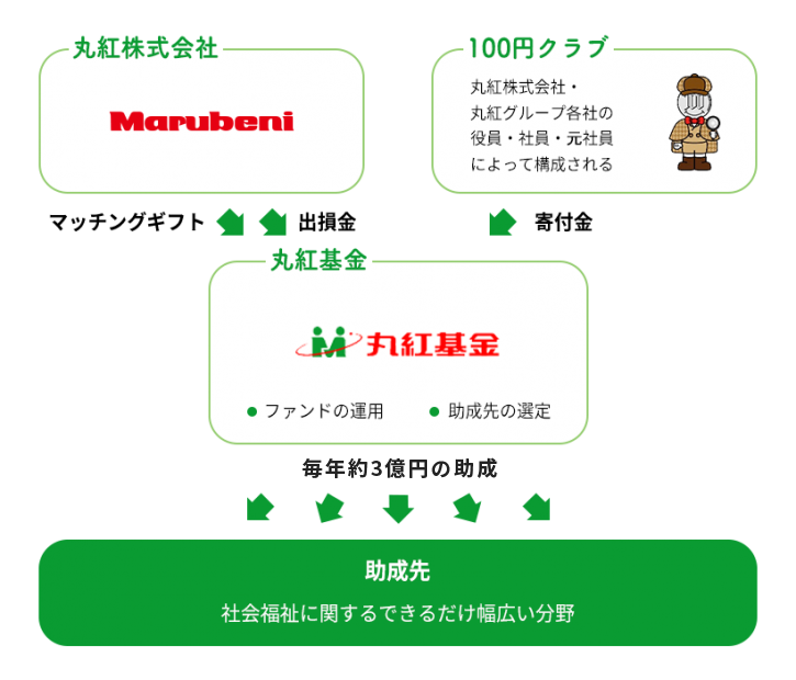 丸紅株式会社からは、毎年100円クラブに寄せられた寄付金と同額がマッチングギフトとして贈られております。