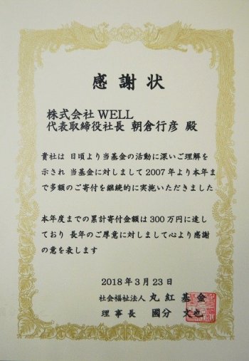 株式会社WELL(ウェル)へ感謝状を贈呈
